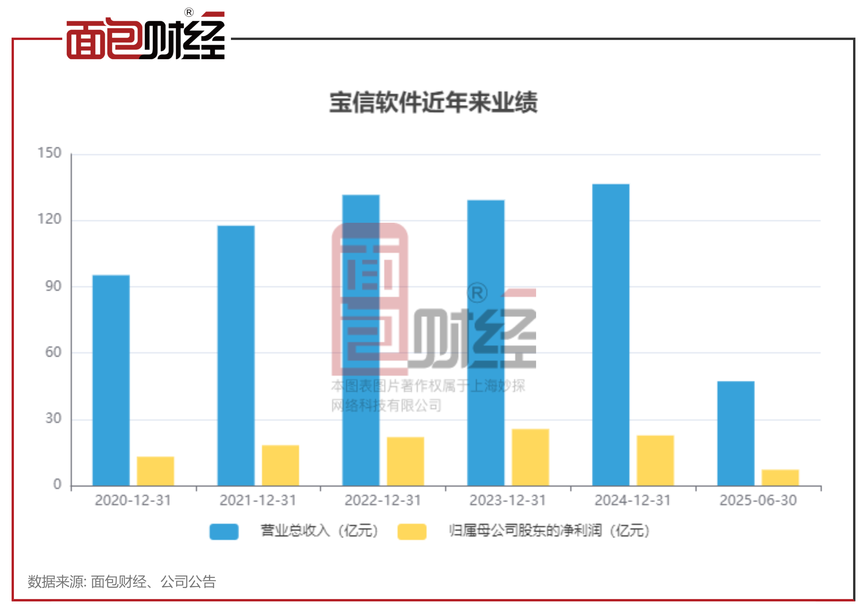 2024年,宝信软件归母净利润同比下滑11.28%,为近年来首次盈利下滑。2025年上半年,宝信软件延续了业绩下降的态势,公司实现营收47.15亿元,同比下降30.08%;归母净利润7.13亿元,同比下降46.46%。
